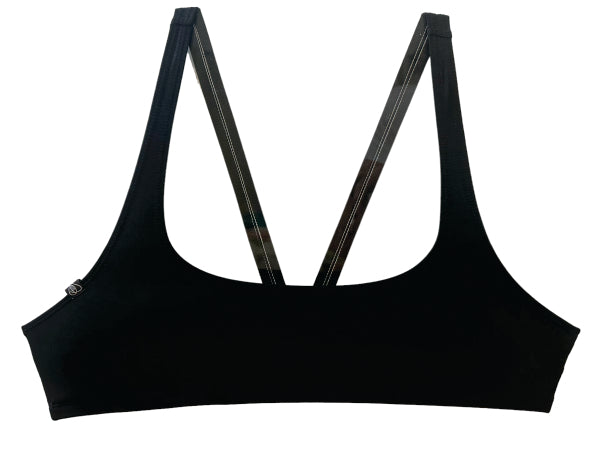 - Comfortable elastic shoulder straps offer enough support for activity while being as narrow as possible for minimal tan lines.